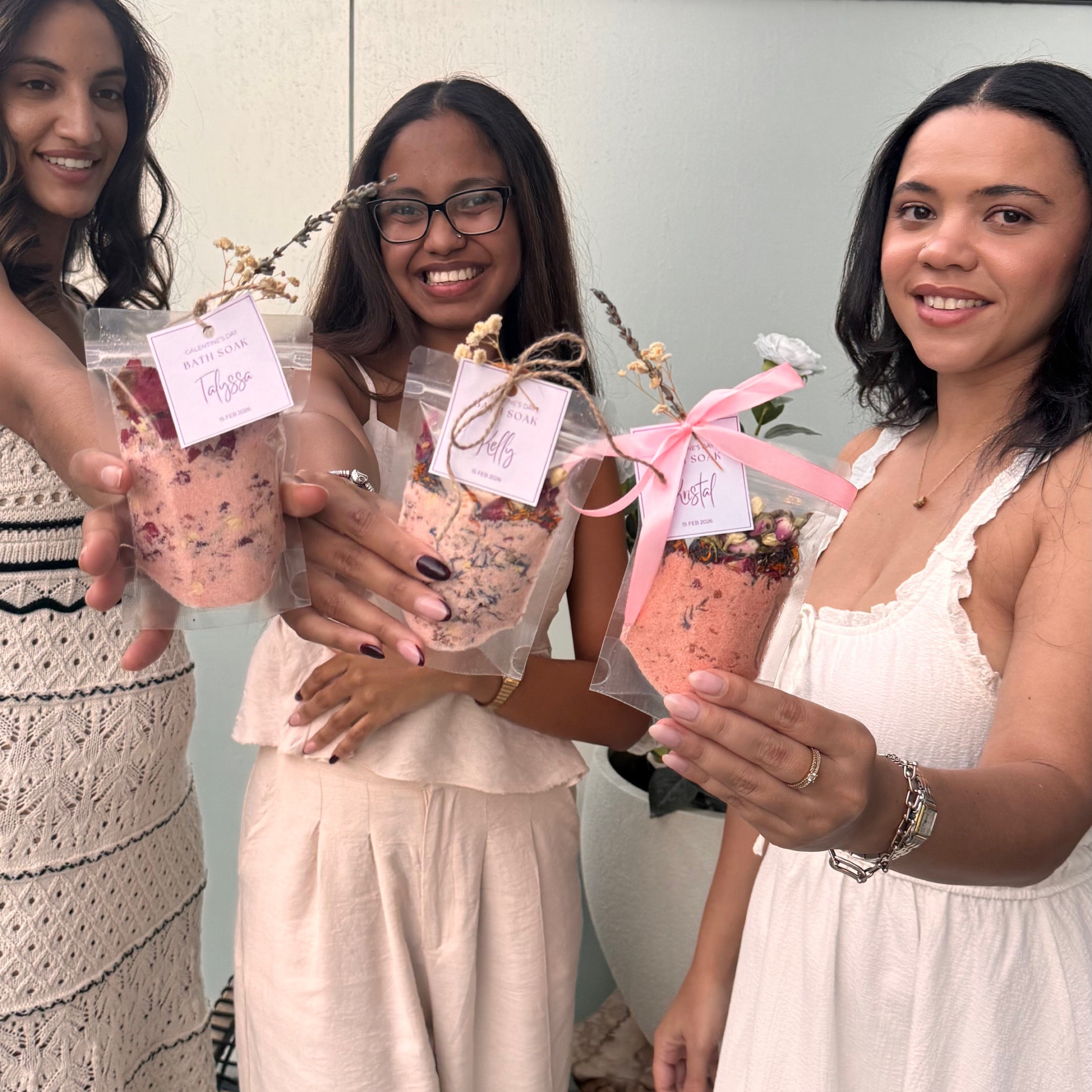 Turn your celebration into a creative, mindful experience. Choose bath salts, sugar scrubs, or bath bombs for your group. Perfect for birthdays, bachelorette parties, baby showers, bridal events, or just because.