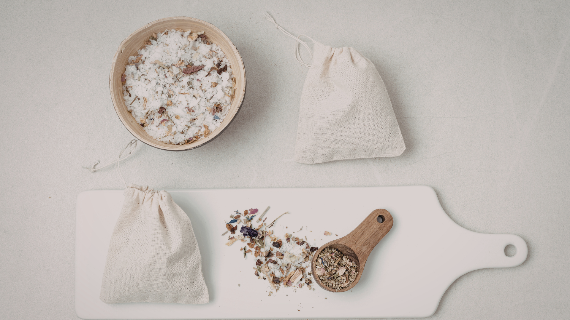 Blend natural salts and essential oils into your personalized bath soak that transforms stress into stillness.